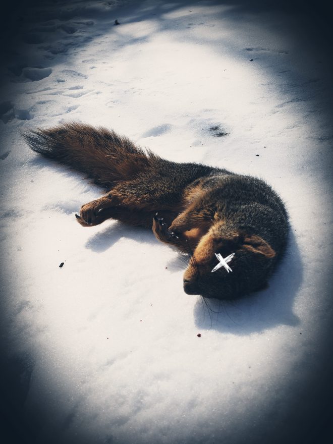 HaikuFell Winter no tree to call home, a squirrel dead from the cold — its eye, food for crows. By: 孙悟安 Share this: Share on Facebook (Opens in new window) Facebook Share on X (Opens in new window) X Related